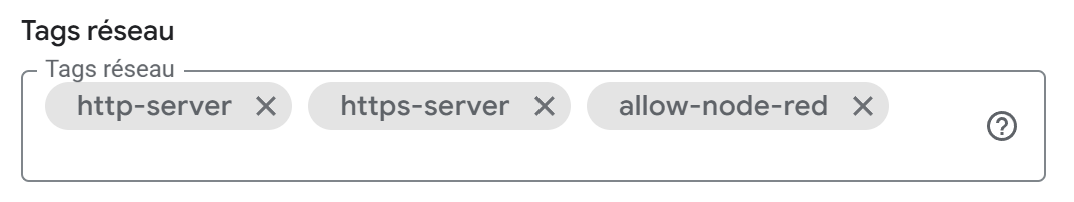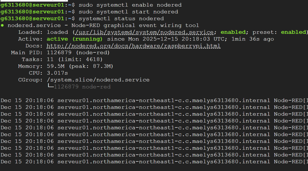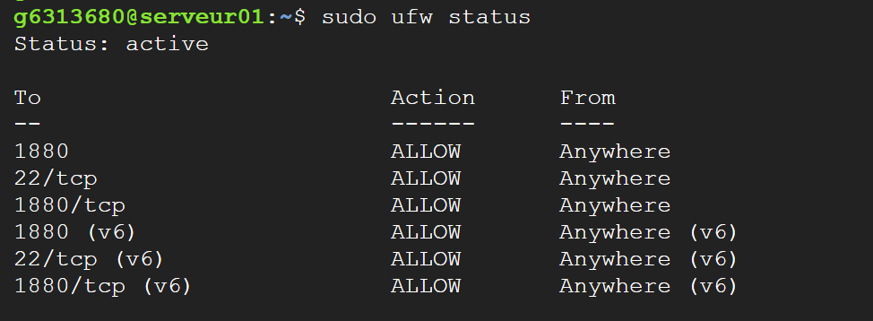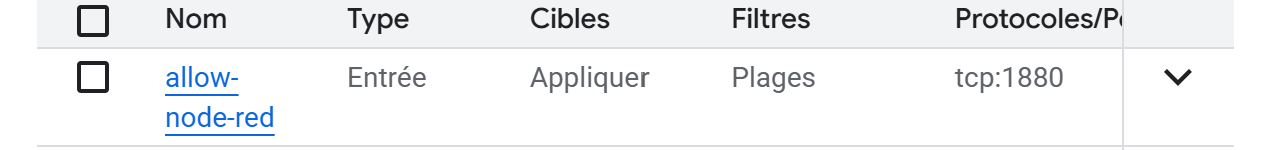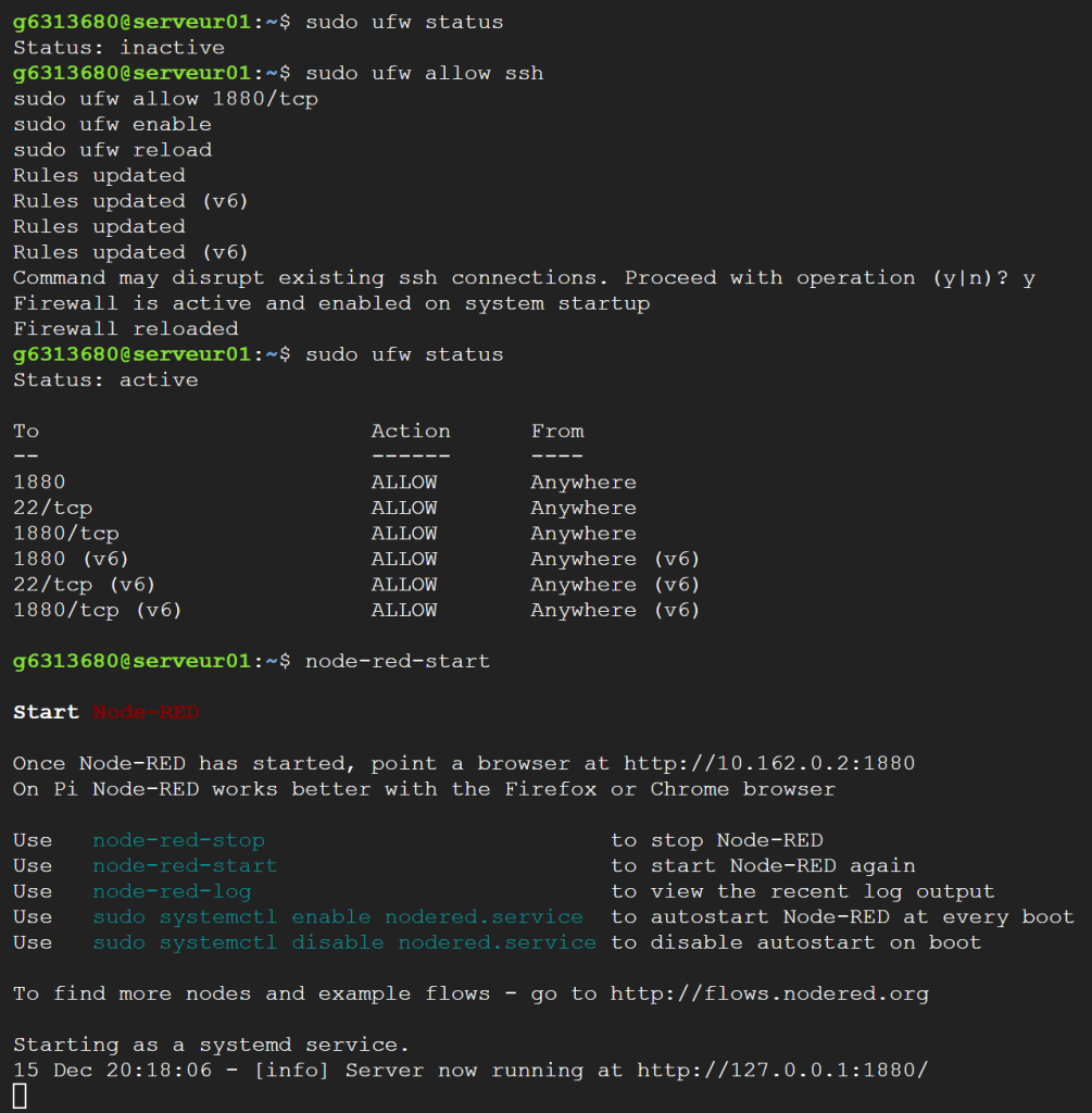 - commandes pour ouvrir les ports de NodeRed dans les règles du pare-feu du « serveur01